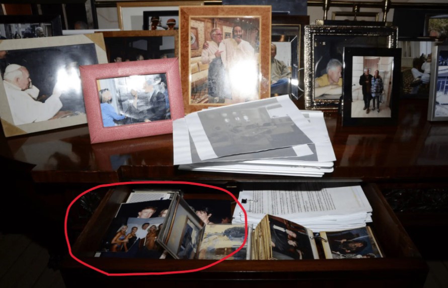 缺失的文件中包括一张为数不多含有特朗普的照片。照片拍摄的是爱泼斯坦位于曼哈顿住所内的一个装饰柜和拉开的抽屉。抽屉中有若干照片,其中一张是特朗普、特朗普妻子梅拉尼娅、爱泼斯坦和爱泼斯坦前女友吉丝兰·马克斯韦尔的合照。
