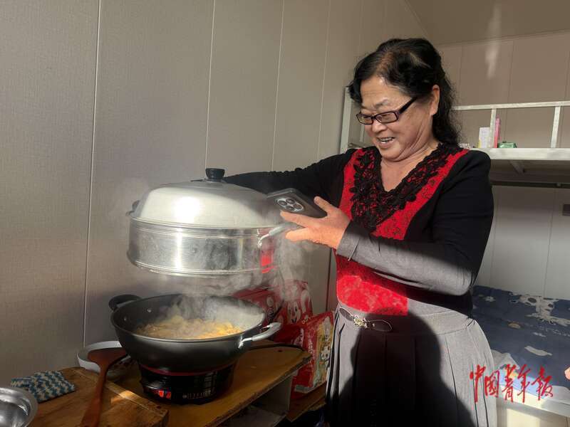 “雨下得特别急,当天晚上村里就组织我们转移了。后来老房子进了水,政府安排我们住到了这儿。”李玉霞一边掀起锅盖一边说,这里供暖充足,生活设施齐全,还有熟悉的老邻居相伴,“住得踏实、安心。”