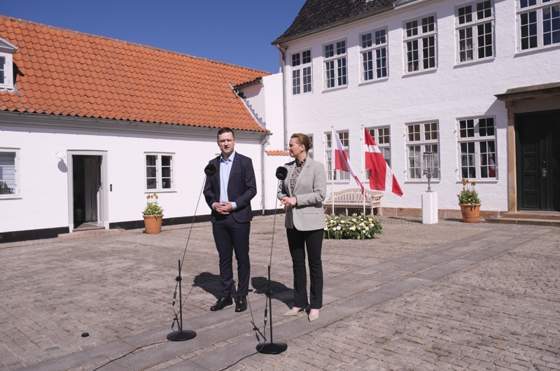 2025年4月27日,在丹麦哥本哈根附近的马林堡,丹麦首相弗雷泽里克森(右)与格陵兰岛自治政府总理延斯-弗雷德里克·尼尔森共同会见记者。
